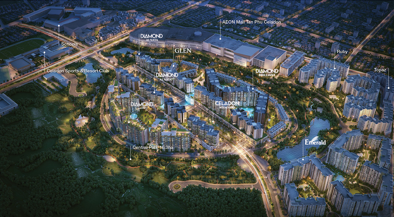 Thiết kế tổng thể Dự án Celadon City có tổng diện tích khủng lên đến 82.5ha , mật độ xây dựng thấp đạt chuẩn khu đô thị xanh chỉ 21,7% . Dự án bao gồm 4 phân khu Diamond, The Glen, Emerald, Ruby , dự kiến xây dựng khoảng 8.577 căn hộ cao cấp và nhiều sản phẩm nhà phố, biệt thự. cùng chuỗi hệ thống tiệ ích cao cấp.